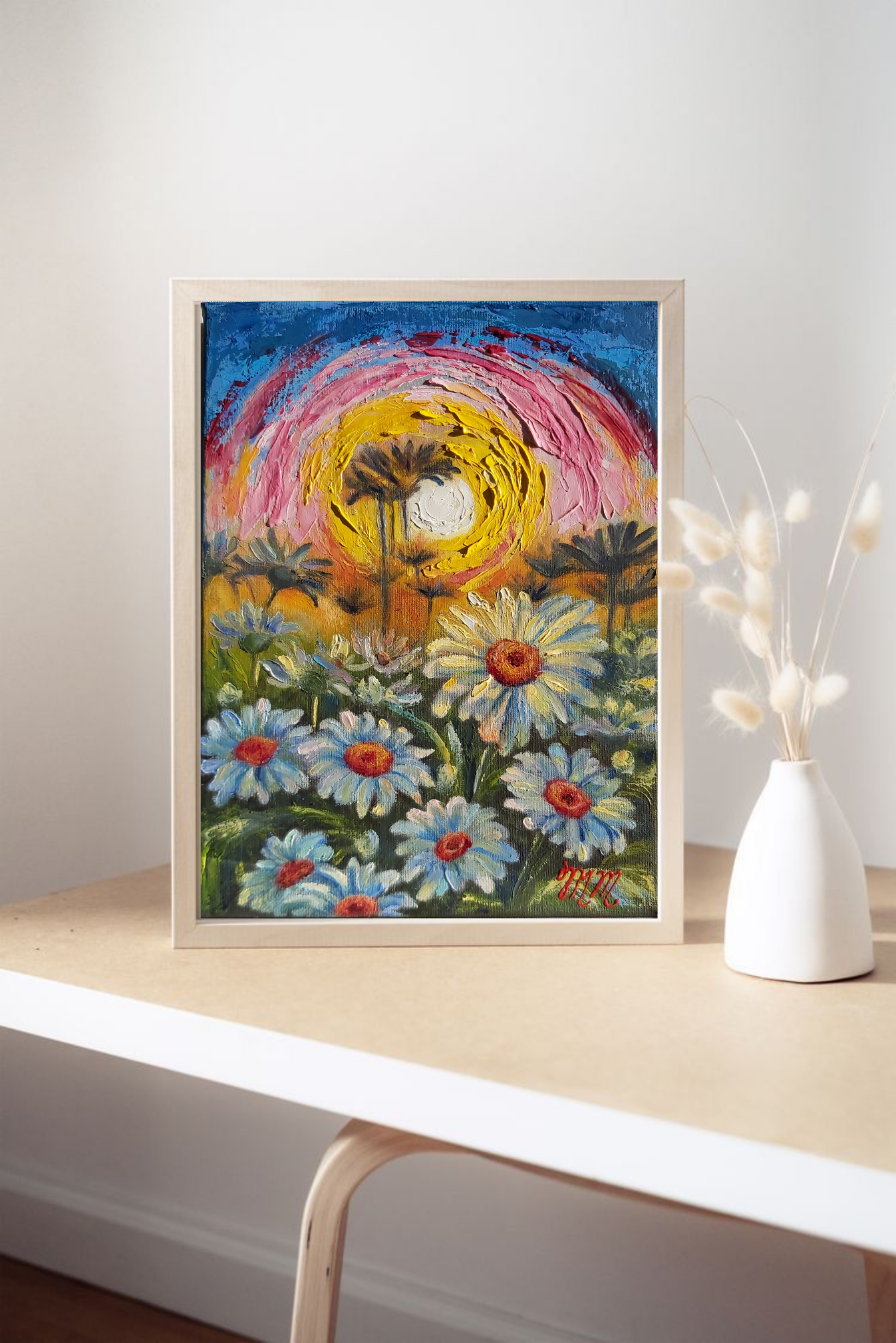Small oil painting Evening Daisies .