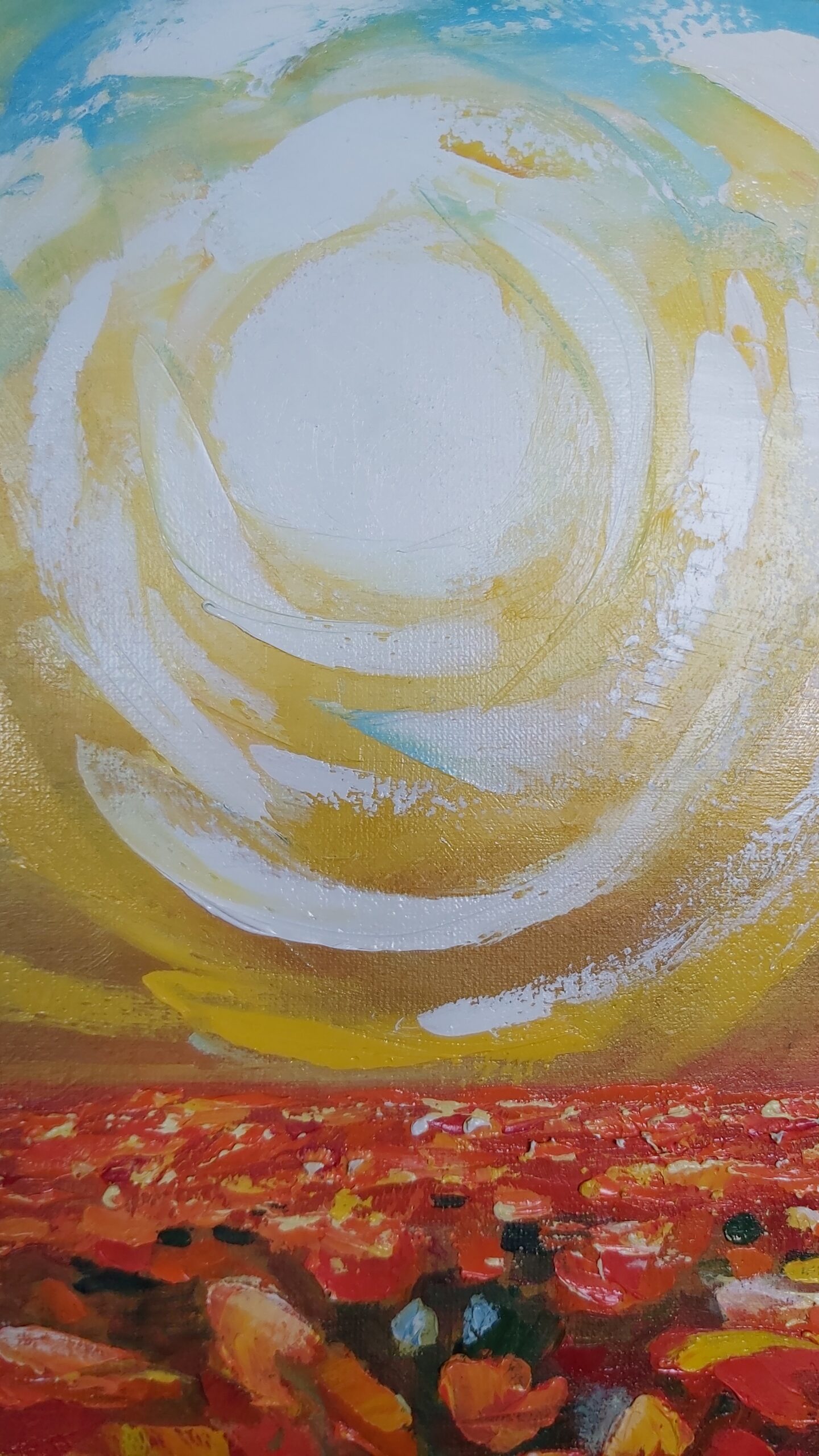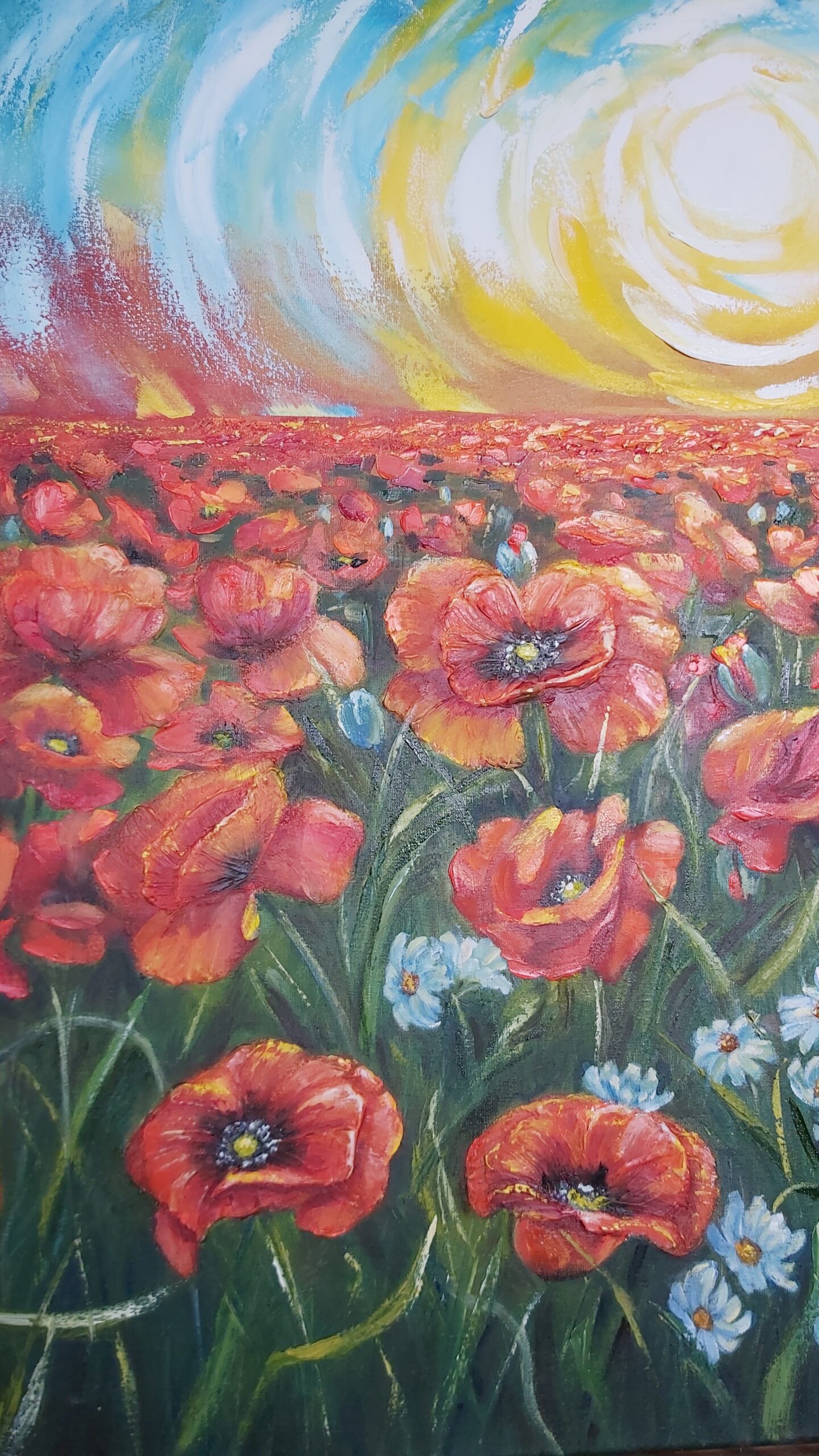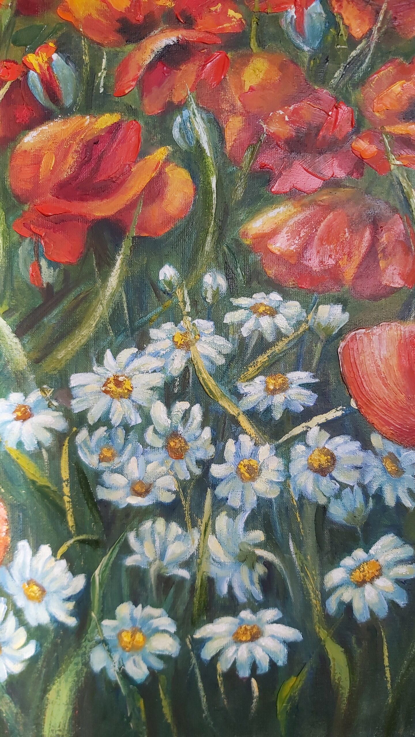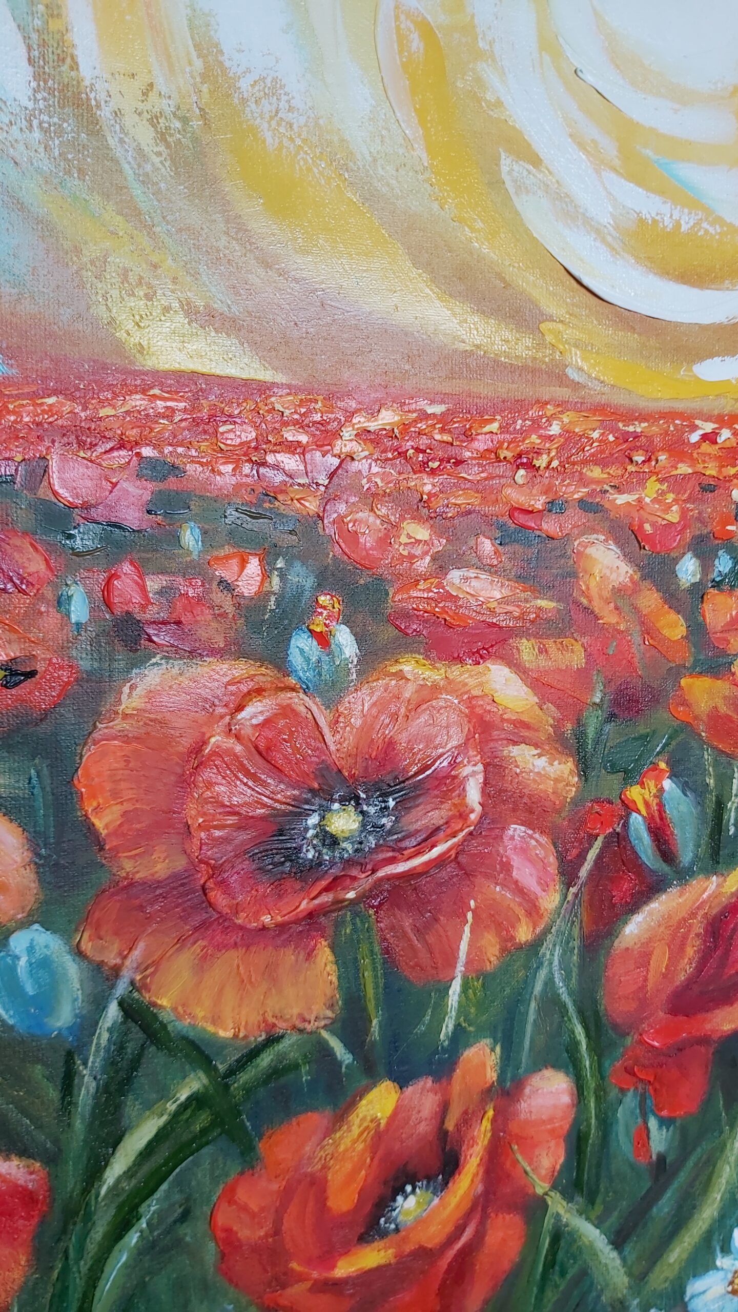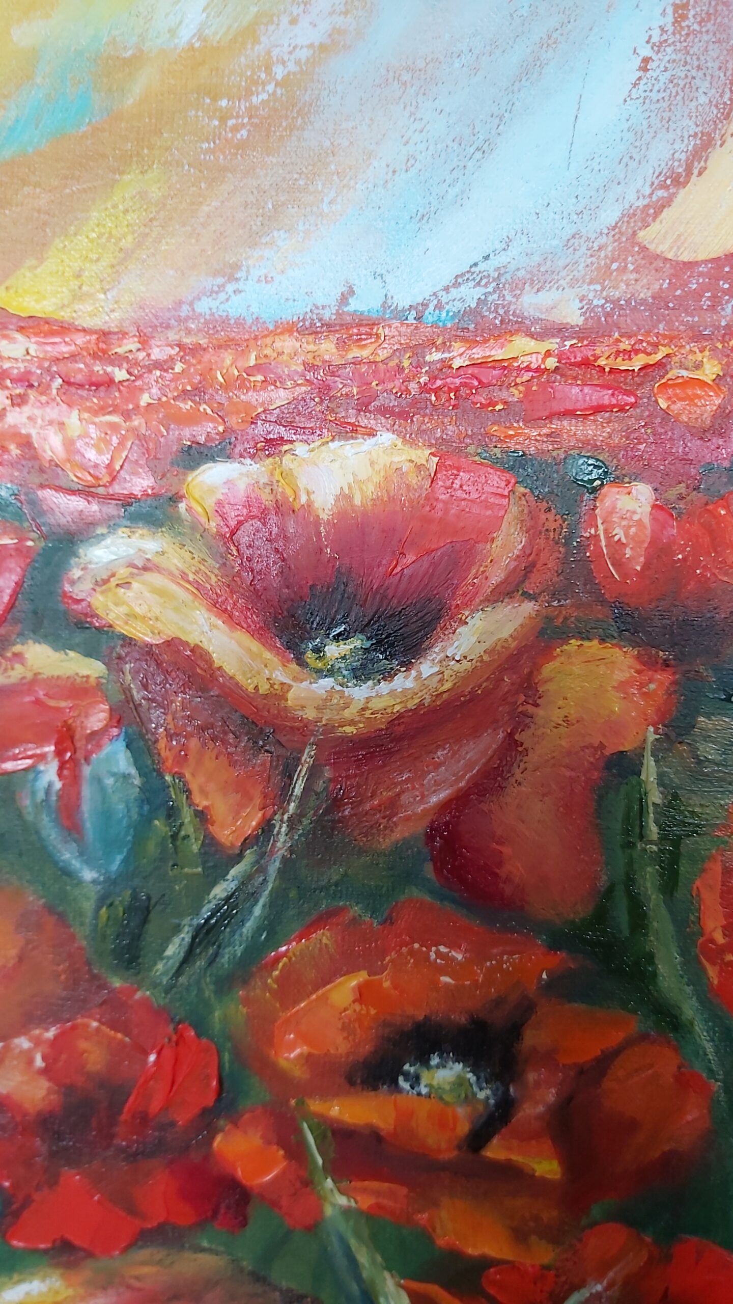 Oilpainting on canvas. Structure painting. Spring , sunny, poppies. Impressionism, modern, interior painting.
