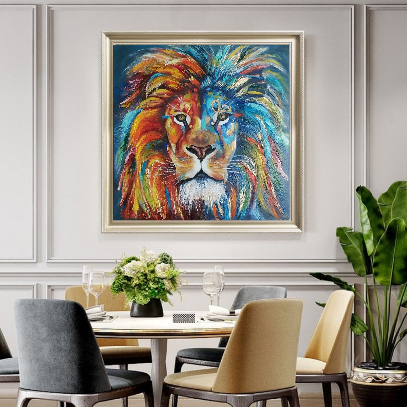 Sunny Rainbow Lion Oil painting. Pop Art. SOLD.