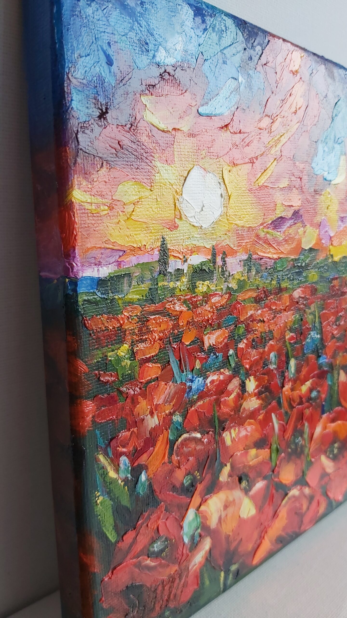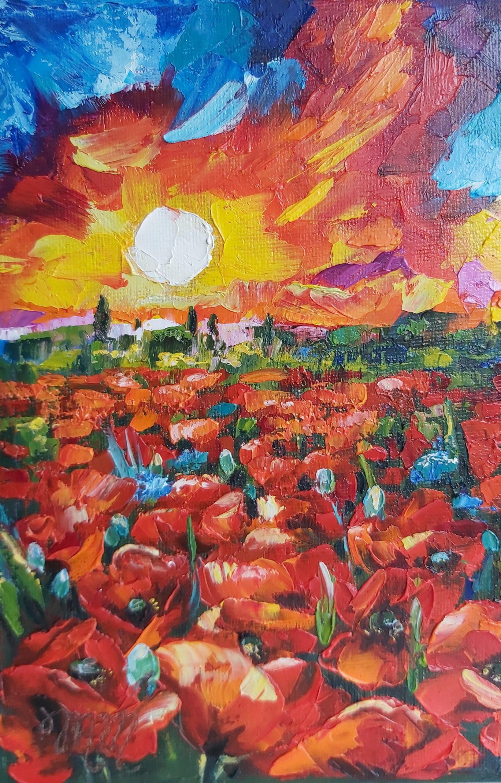 Oil painting Poppies . Landschap.