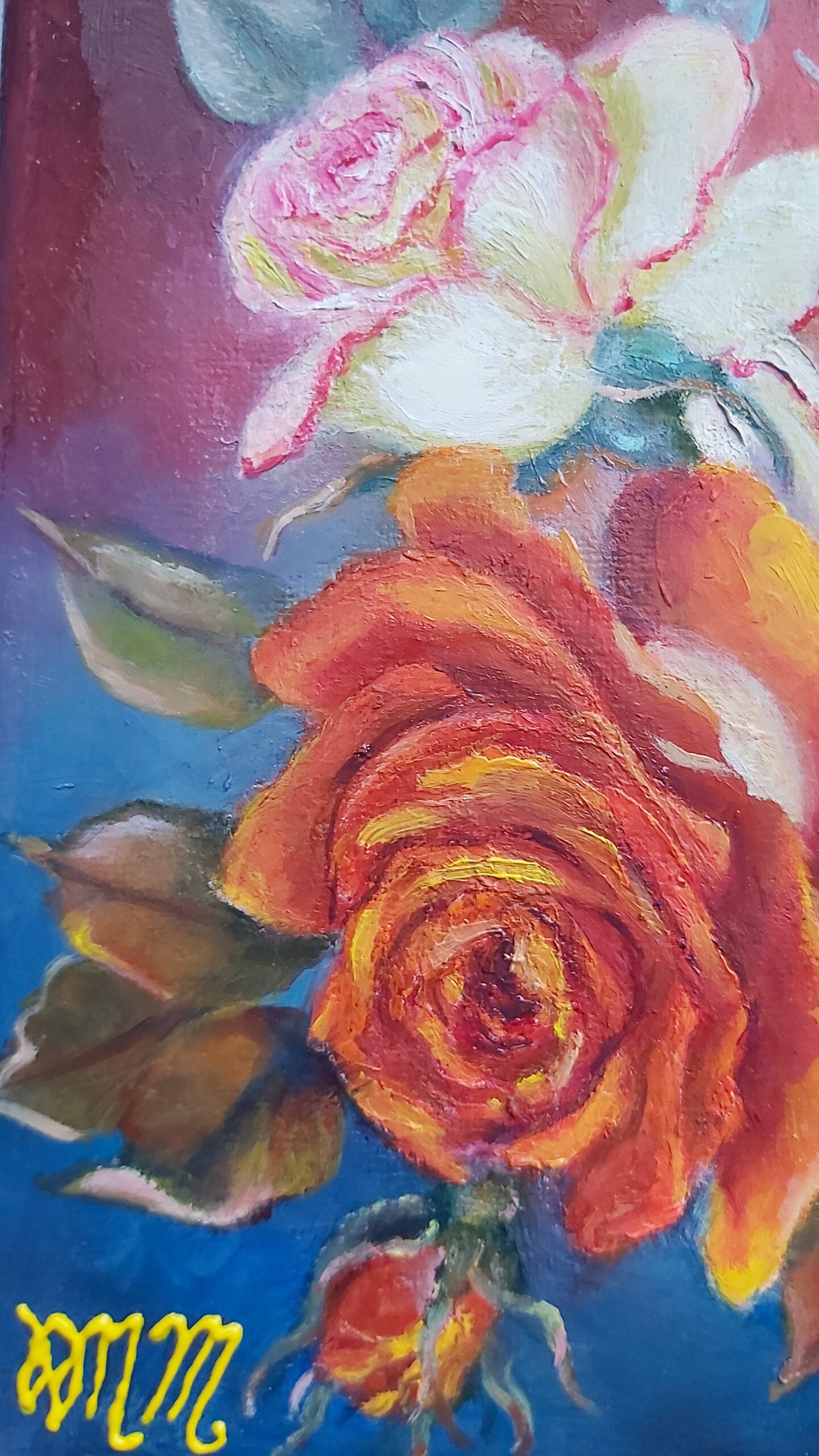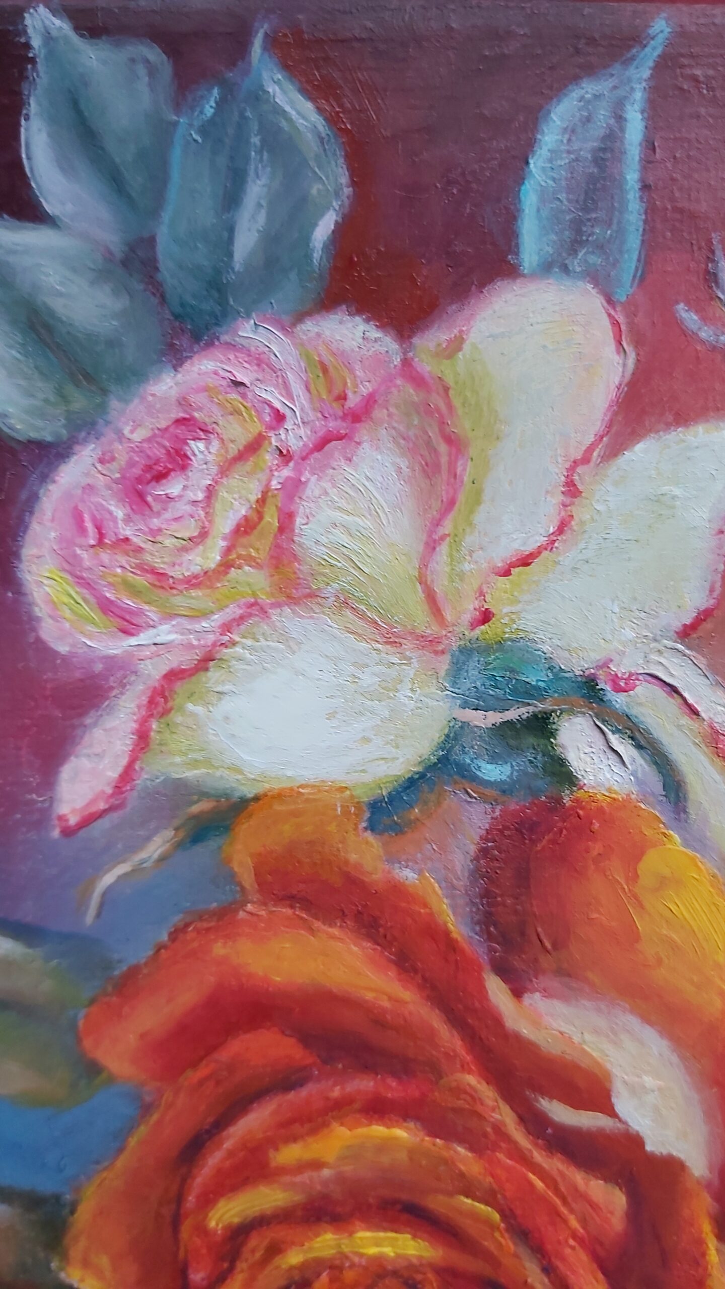 Roses red and pink. Small oilpainting on canvas 20×20 cm (8×8 inches) . Original author’s work. Impressionism.